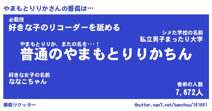 | 伝説のあだ名 | 『不死鳥のスナイパーやまもとりりか』 |
