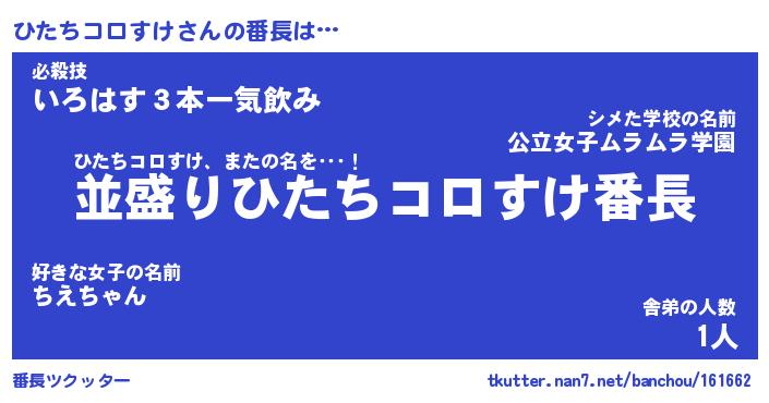 | 男性向けラノベタイトル風あだ名 | 『ひたちコロすけの憂鬱』 |