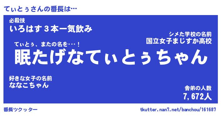 | 伝説のあだ名 | 『封印されしスナイパーてぃとぅ』 |