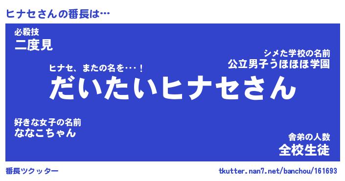 | 伝説のあだ名 | 『不死鳥のスナイパーヒナセ』 |