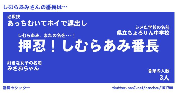 | 2回繰り返すあだ名 | 『しむしむ』『ししむむ』『あんあん』 |