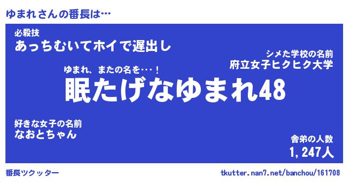 | 意味不明あだ名 | 『ペロリンゆまれ』『ゆまれフォーエバー』 |