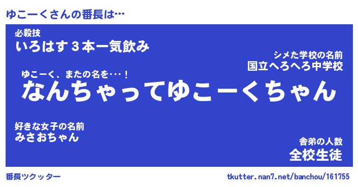 | ヒーロー風カッコイイあだ名 | 『スーパーユコーク』『銀牙騎士ユコ』 |