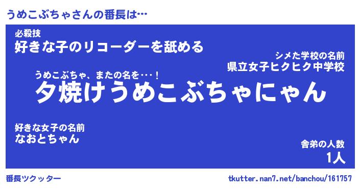 | 肩書あだ名 | 『うめこぶちゃCEO』『うめこぶちゃ班長』 |