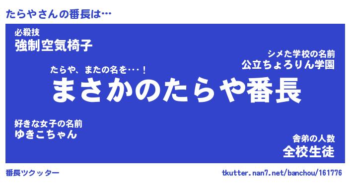 | ヒーロー風カッコイイあだ名 | 『スーパータラヤ』『ウルトラたらやマン』 |