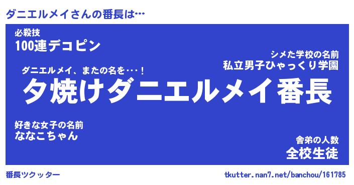 | ヒーロー風カッコイイあだ名 | 『スーパーダニエルメイ』『銀牙騎士ダニ』 |