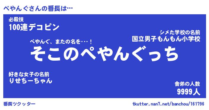 | 意味不明あだ名 | 『ペロリンぺやんぐ』『永久保存ぺやんぐ』 |