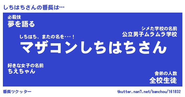| 意味不明あだ名 | 『ペロリンしちはち』『永久保存しちはち』 |