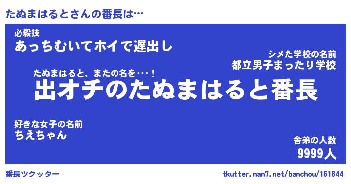 | ヒーロー風カッコイイあだ名 | 『スーパータヌマハルト』『天弓騎士タヌ』 |