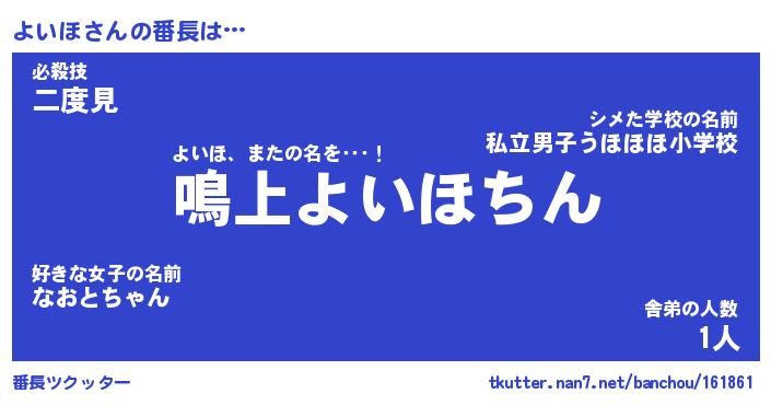 | ポケモン風あだ名 | 『ヨイチュウ』『ヨイホダネ』 |