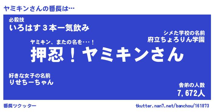 | 意味不明あだ名 | 『ペロリンヤミキン』『永久保存ヤミキン』 |