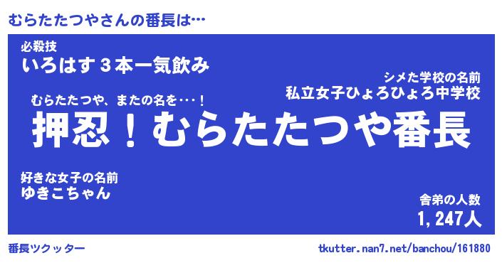 | 伝説のあだ名 | 『封印されしスナイパーむらたたつや』 |