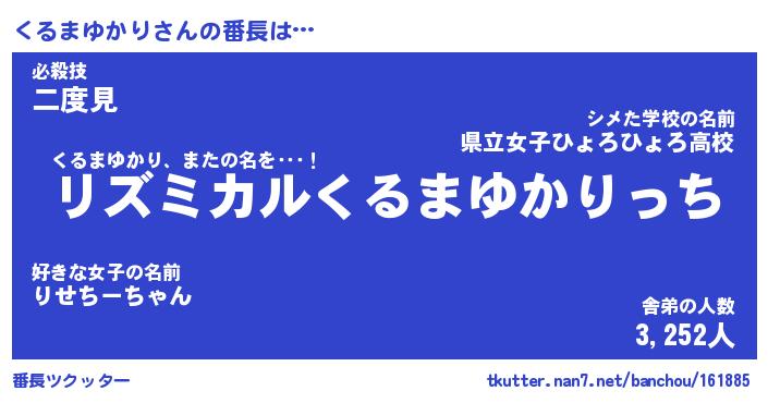 | 伝説のあだ名 | 『伝説のスナイパーくるまゆかり』 |