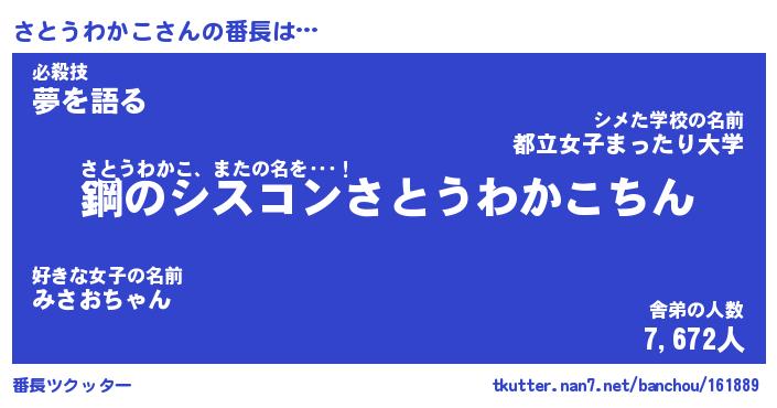 | 伝説のあだ名 | 『封印されしスナイパーさとうわかこ』 |