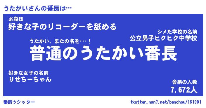 | 肩書あだ名 | 『うたかい御曹司』『うたかい国家主席』 |