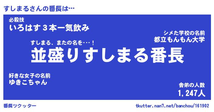 | 意味不明あだ名 | 『ペロリンすしまる』『永久保存すしまる』 |