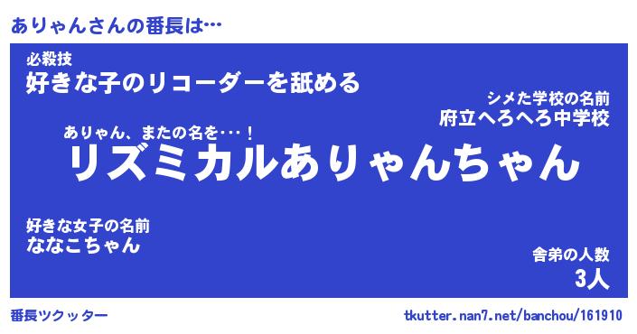 | 肩書あだ名 | 『ありゃん店長』『ありゃん国家主席』 |