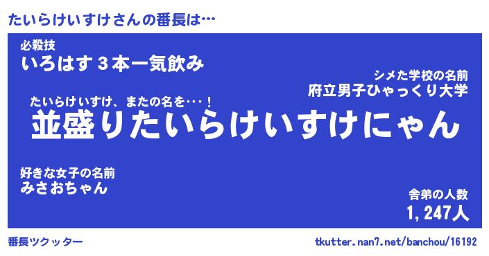 | ヒーロー風カッコイイあだ名 | 『スーパータイラケイスケ』 |