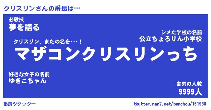 | ヒーロー風カッコイイあだ名 | 『スーパークリスリン』『幻影騎士クリ』 |