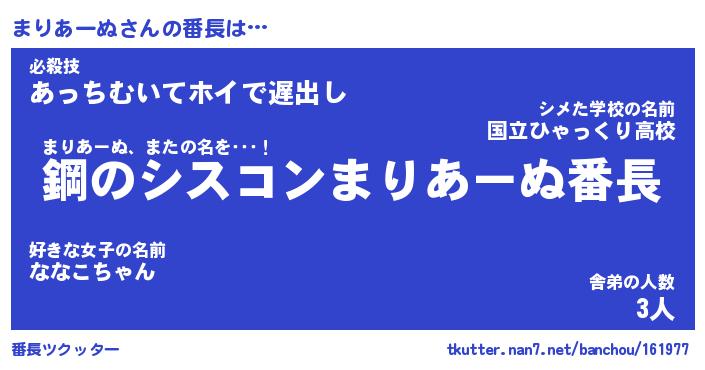 | 伝説のあだ名 | 『封印されしスナイパーまりあーぬ』 |