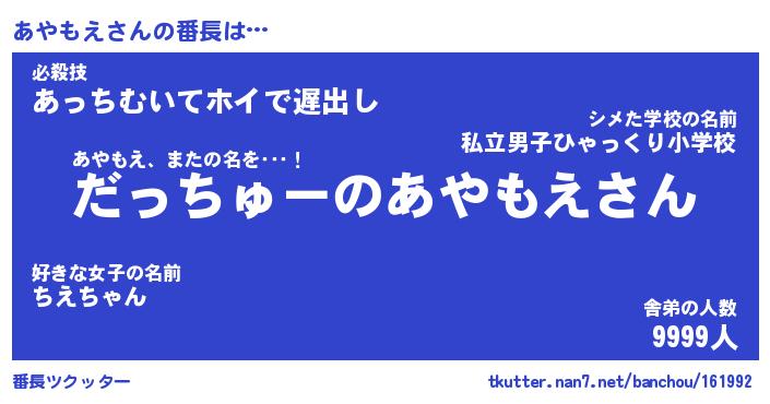 | 肩書あだ名 | 『あやもえ店長』『あやもえ国家主席』 |