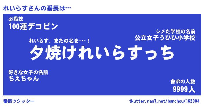 | 伝説のあだ名 | 『封印されしスナイパーれいらす』 |