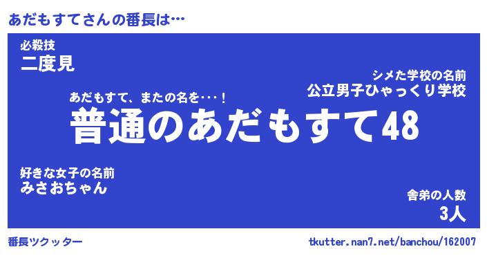 | ヘコむあだ名 | 『あだにー』『牛乳』『あだっぺ』 |