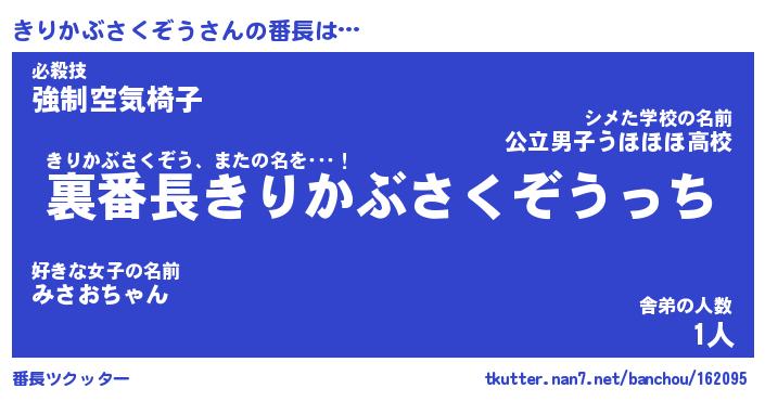| ヒーロー風カッコイイあだ名 | 『スーパーキリカブサクゾウ』 |