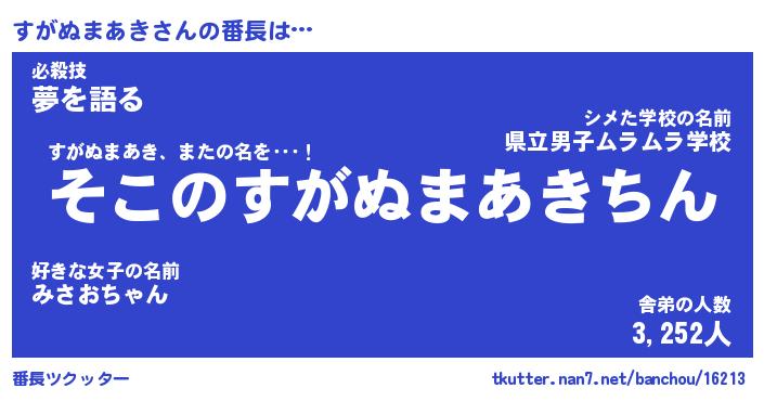 | 肩書あだ名 | 『すがぬまあき社長』『すがぬまあき先生』 |