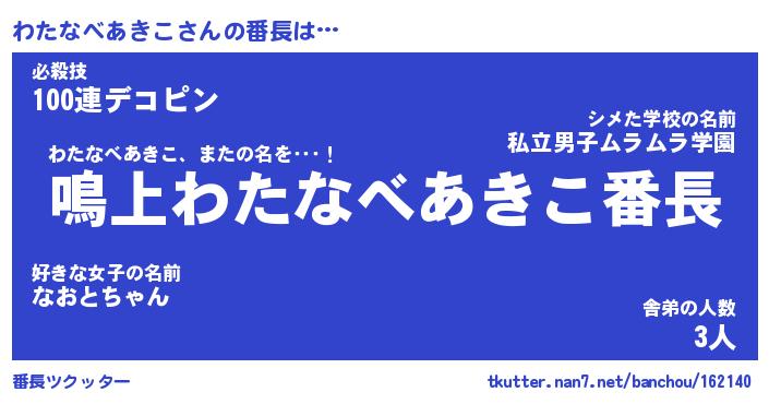 | ヒーロー風カッコイイあだ名 | 『スーパーワタナベアキコ』 |