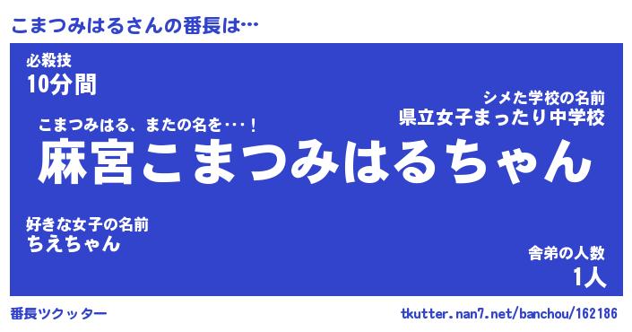 | 恥ずかしいあだ名 | 『プリティーこまつみはる』『こまっちょ』 |