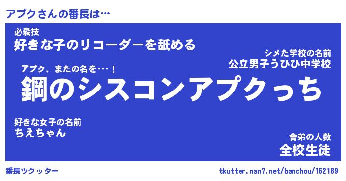 | 意味不明あだ名 | 『ペロリンアプク』『アプクフォーエバー』 |