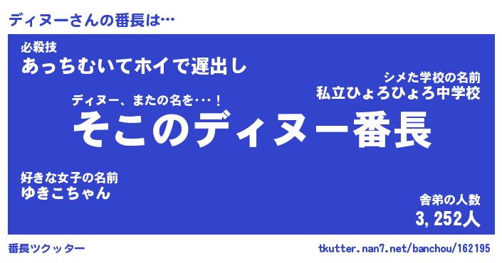 | 意味不明あだ名 | 『ペロリンディヌー』『永久保存ディヌー』 |