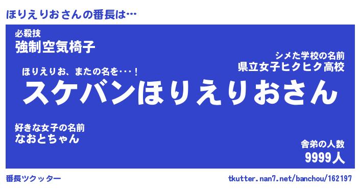 | 肩書あだ名 | 『ほりえりお社長令嬢』『ほりえりお班長』 |