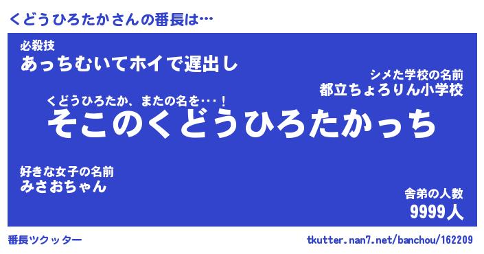 | ヘコむあだ名 | 『くどにー』『なまこ酢』『くどっぺ』 |