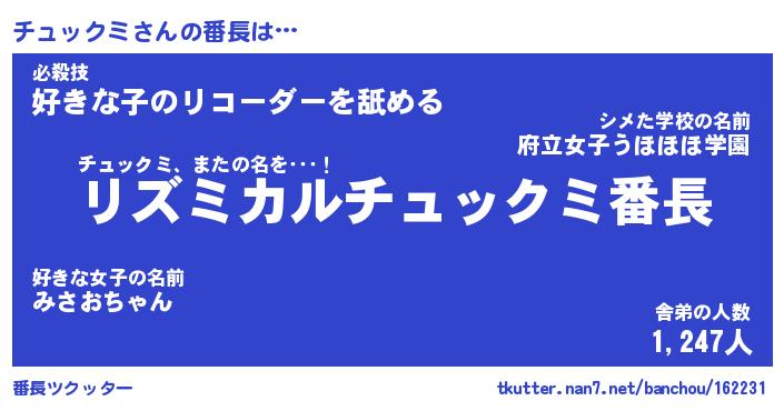 | ヘコむあだ名 | 『チュもー』『なまこ酢』『チュお』 |