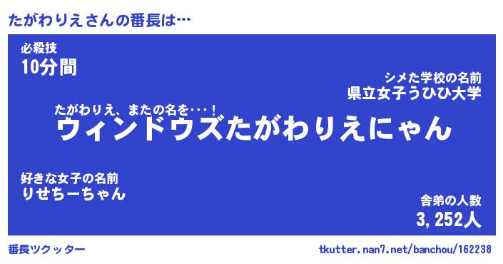 | 肩書あだ名 | 『たがわりえ店長』『たがわりえ総理大臣』 |
