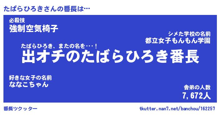 | 恥ずかしいあだ名 | 『プリティーたばらひろき』『たばっちょ』 |