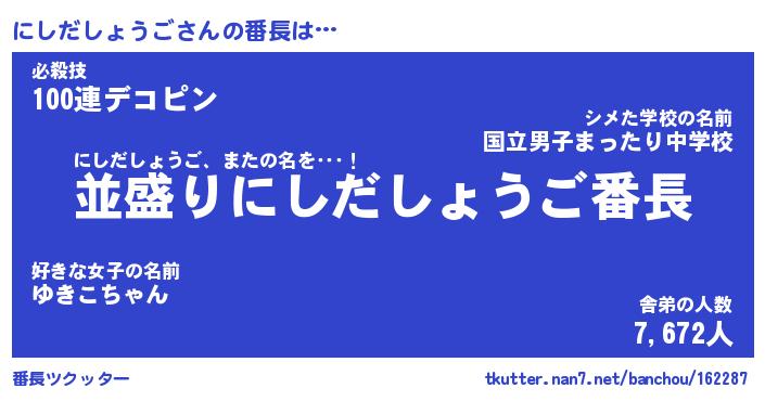 | 2回繰り返すあだ名 | 『にしにし』『ににしし』『ぬらぬら』 |