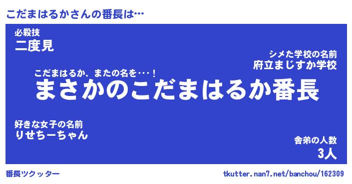 | ヒーロー風カッコイイあだ名 | 『スーパーコダマハルカ』『魔戒騎士コダ』 |