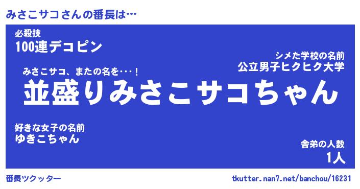 | 欧米人風あだ名 | 『マイケルみさこサコ』 |