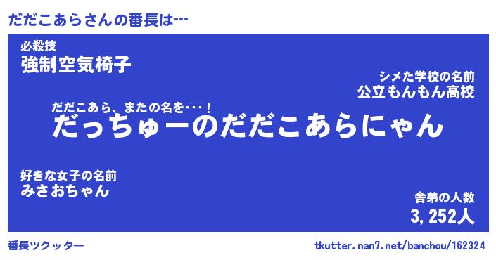 | 2回繰り返すあだ名 | 『だだだだ』『だだだだ』『がびがび』 |