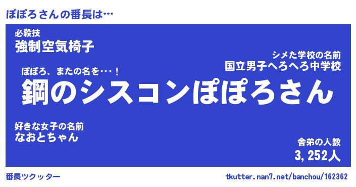 | 2回繰り返すあだ名 | 『ぽぽぽぽ』『ぽぽぽぽ』『くだくだ』 |