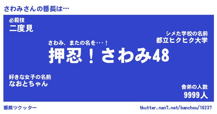 | ポケモン風あだ名 | 『サワチュウ』『サワミダネ』 |