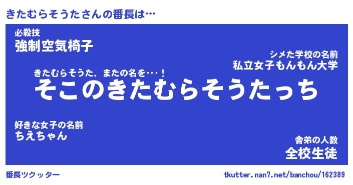 | ヒーロー風カッコイイあだ名 | 『スーパーキタムラソウタ』 |