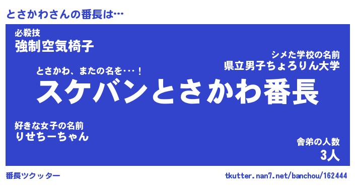| ファンタジー風あだ名 | 『トサフェル』『エターナルトサカワー』 |