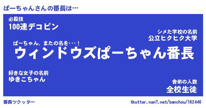 | 伝説のあだ名 | 『伝説のスナイパーぱーちゃん』 |