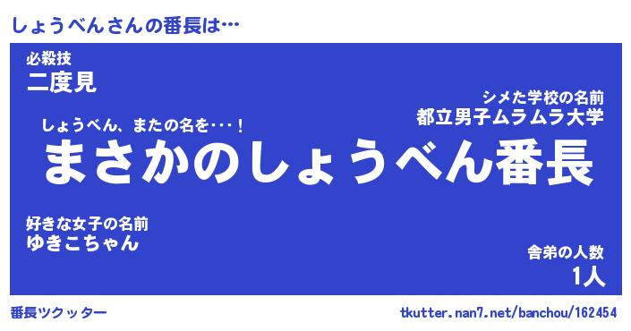 | 男性向けラノベタイトル風あだ名 | 『しょうべんの憂鬱』 |