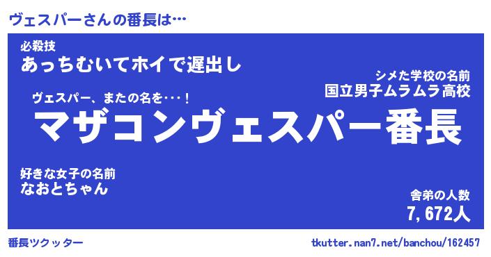 | ヒーロー風カッコイイあだ名 | 『スーパーヴェスパー』『天弓騎士ヴェ』 |