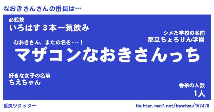 | ポケモン風あだ名 | 『ナオチュウ』『ナオキダネ』 |